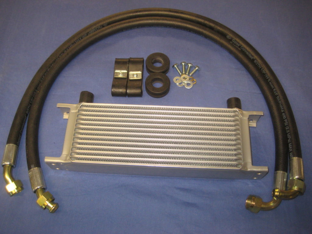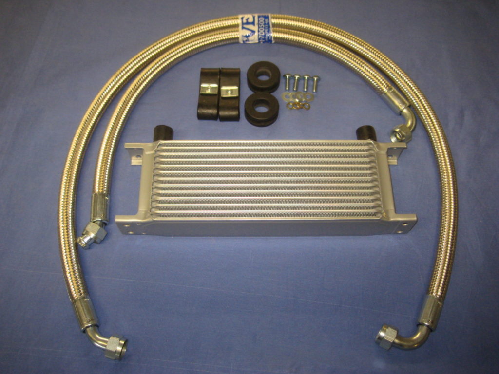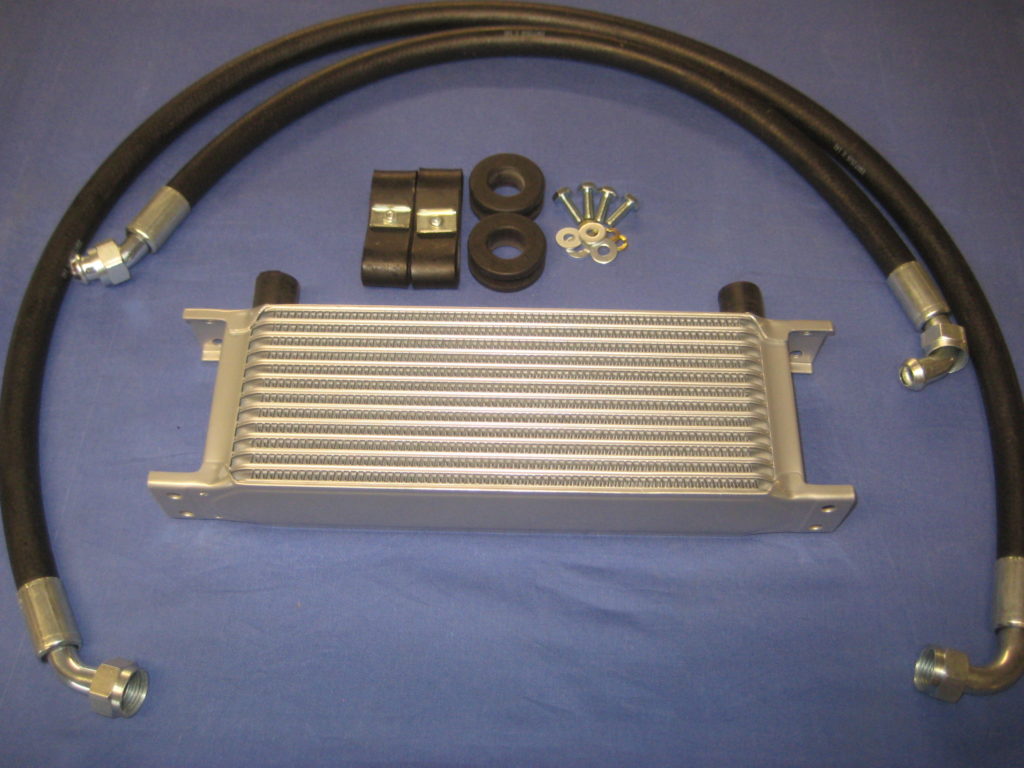 ARO9807SRB MGB 10 ROW OIL COOLER, PAIR OF STAINLESS STEEL HOSES & FITTING KIT 1975 ON