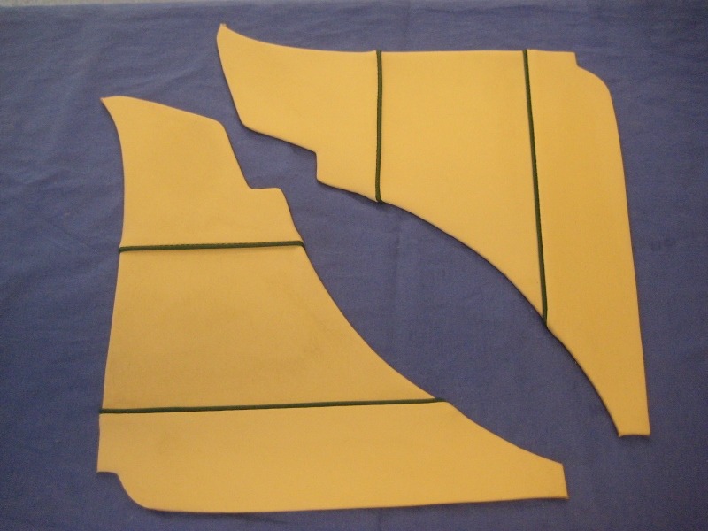 WA131A MGB GT REAR WHEEL ARCH PANELS 1968-70 2 LINES OF PIPING BLACK WITH 2 LINES BLACK PIPING