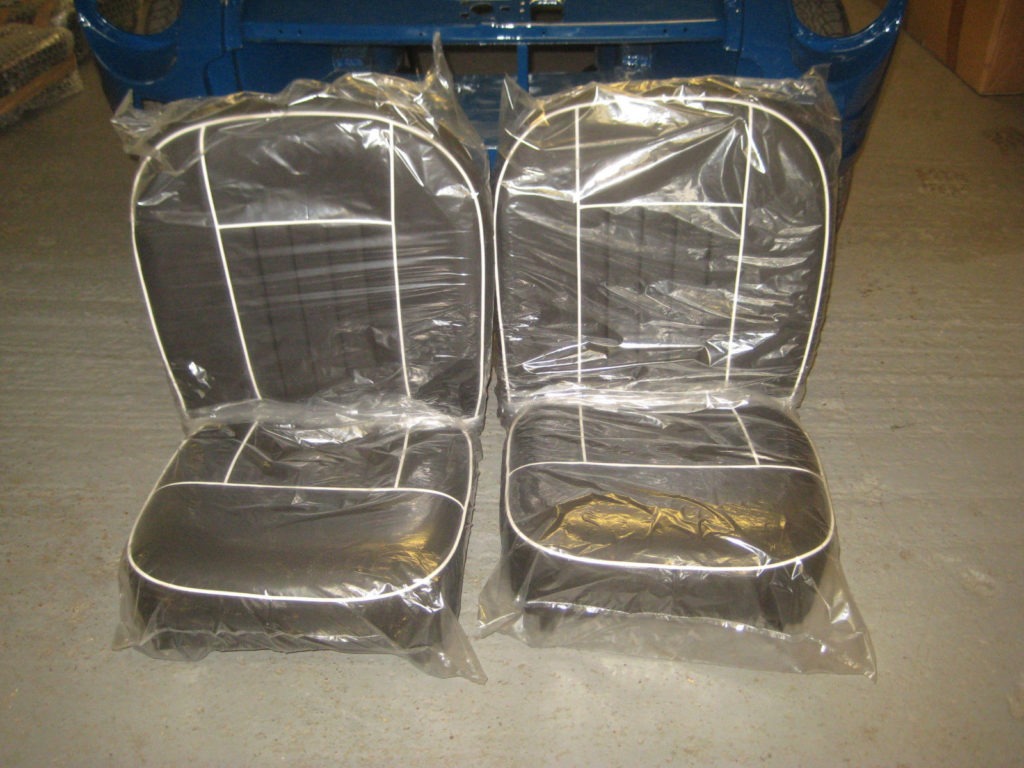 MGC PAIR OF NON RECLINING LEATHER SEATS BLACK WITH RED PIPING 1967-68 MGC S777AMMGC