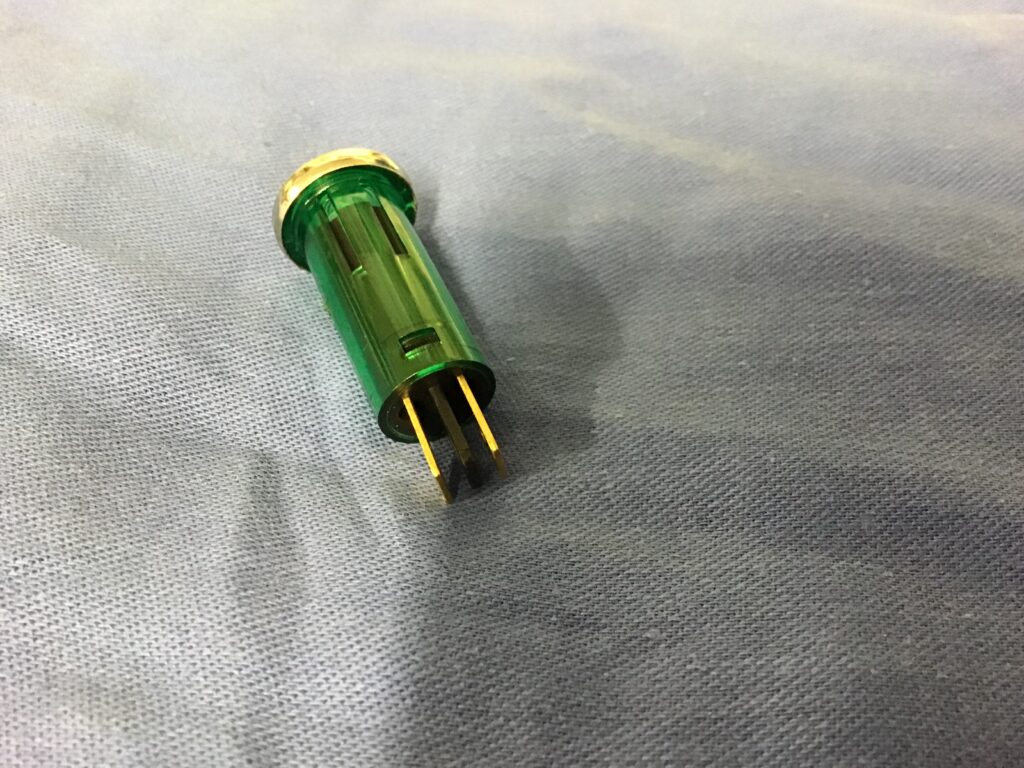 Here we have a Green warning lamp with chrome bezel.
